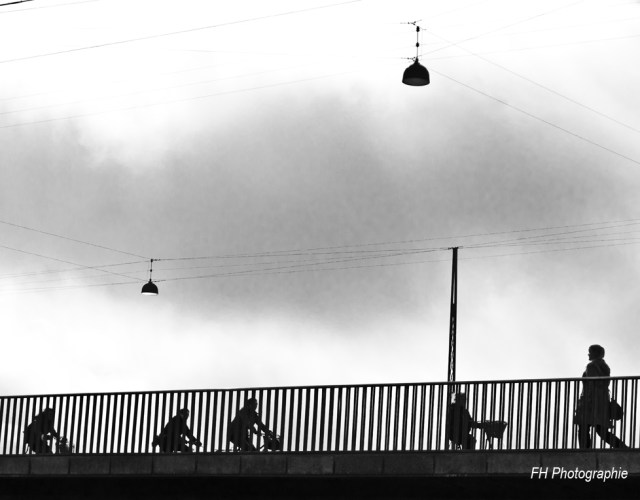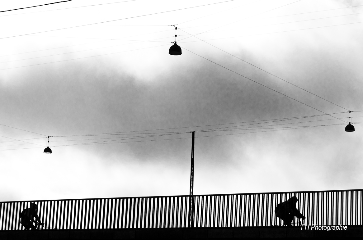 En introduction à ce voyage voici quelques photos prises en contrejour sur un pont de la ville. J’aime le jeu avec les lampadaires. Ils donnent une certaine poésie à la scène, un peu de magie.