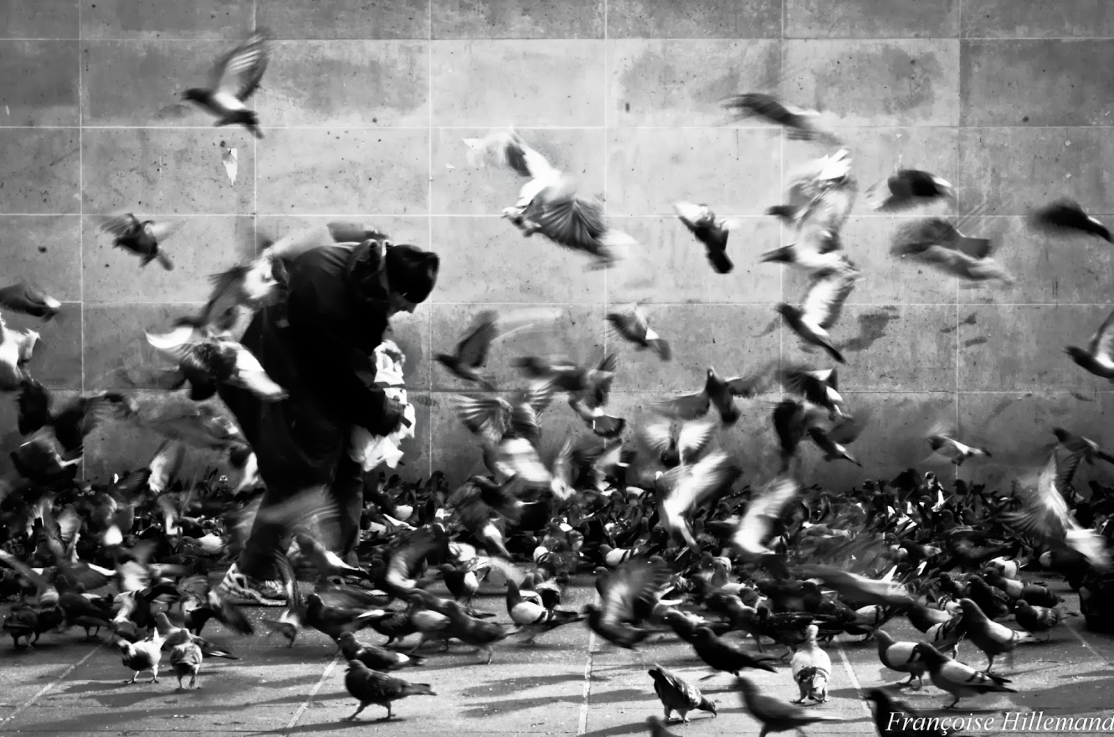 2. Je le vois souvent ce monsieur … et c'est fou comme les pigeons se sont habitués à lui !