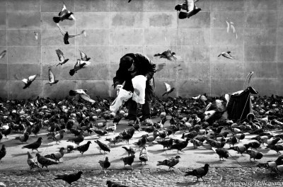 La photo du vieil homme aux pigeons a eu vos faveurs dans le billet précédent aussi je me suis décidée à vous en montrer plus. En effet, j’ai pris un certain nombre de photos de cette scène à la fois triste et belle. L’affection que porte le vieil homme aux oiseaux est touchante.