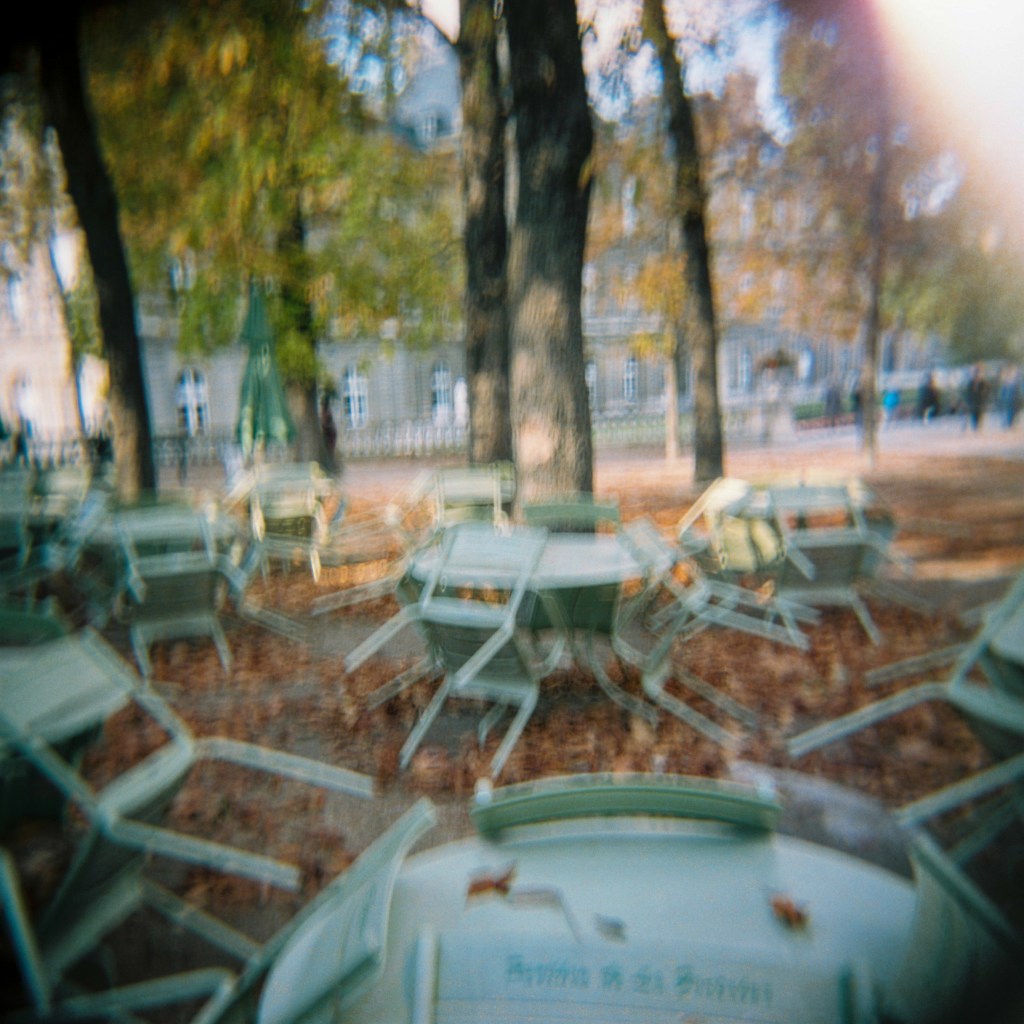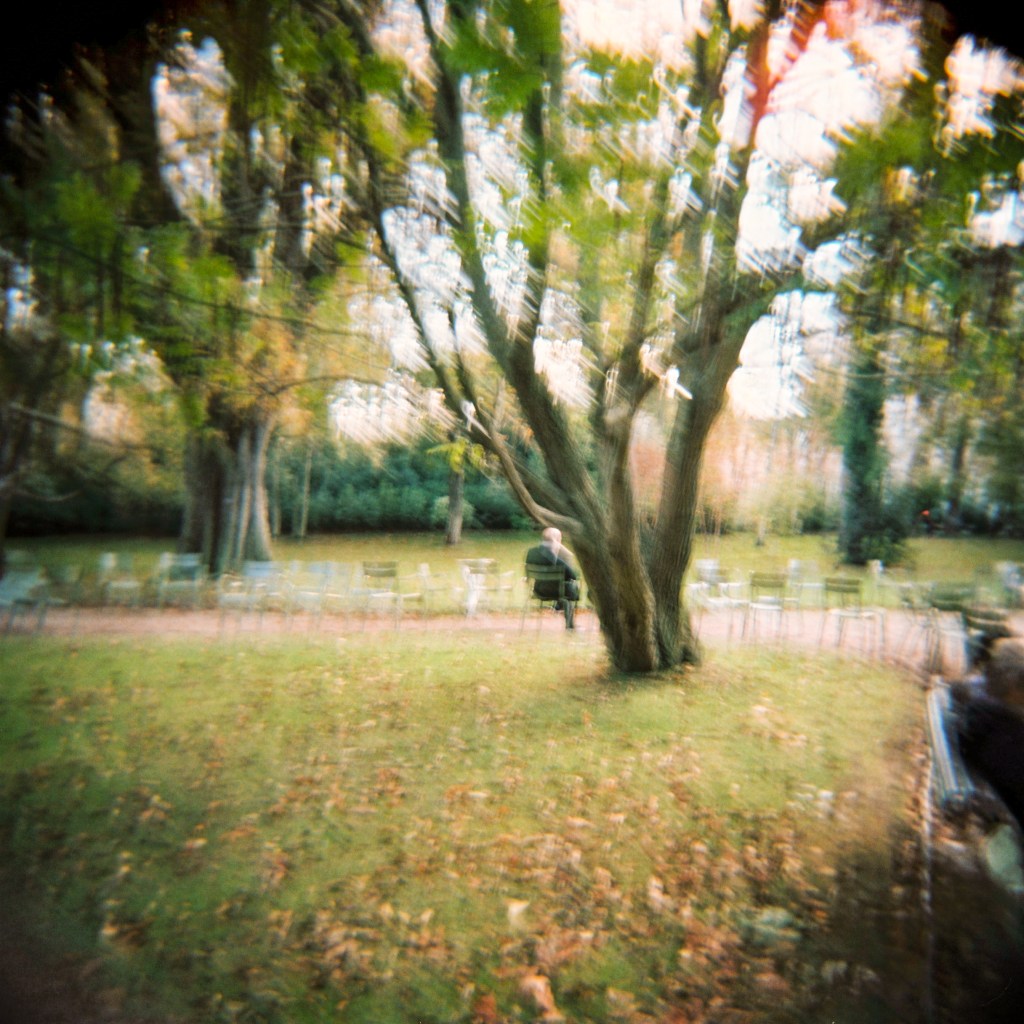 En attendant qu’ils soient retrouvés, oublions quelques instants la pluie qui trépigne sur les pavés de la capitale, remontons le temps vers l’automne 2018. Je vous invite à nous suivre, mon Holga et moi, pour une petite promenade au jardin du Luxembourg.